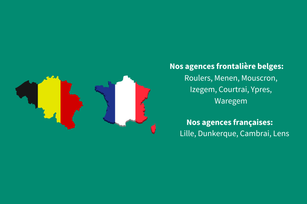 Având deja șapte sucursale în regiunea de frontieră belgiană (Roeselare, Menin, Mouscron, Izegem, Courtrai, Ypres, Waregem), compania noastră este bine poziționată pentru a răspunde nevoilor lucrătorilor și companiilor de ambele părți ale frontierei.